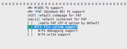File systems --->DOS/FAT/NT Filesystems --->NTFS file system support