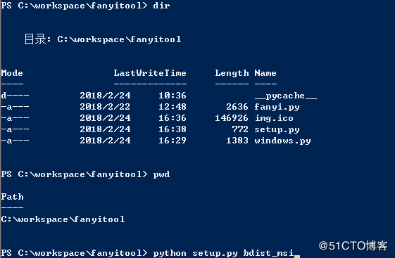 待执行完毕,可以项目文件下生成两个文件夹dist中为msi安装文件,在其他windows服务器安装后就为build下的文件内容,在build下的exe.win-amd64-3.6下的windows.exe 就可打开小工具