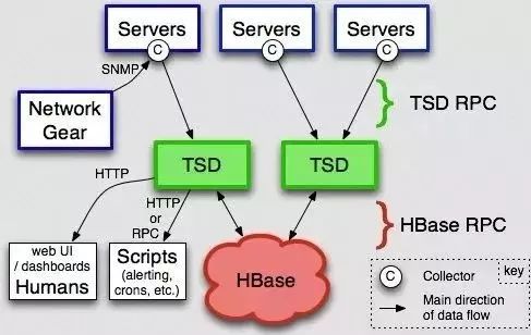 OpenTSDB采用的是HBase的分布式存储,它获取数据的模式与Prometheus不同,采用的是推模式(Push)。