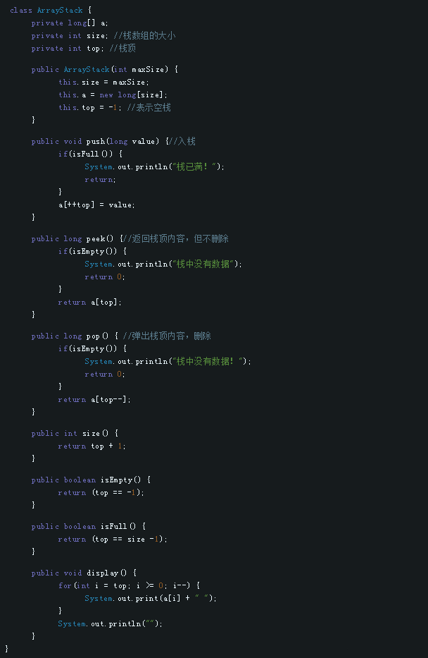 栈的主要机制可以用数组来实现,也可以用链表来实现,下面用数组来实现栈的基本操作: