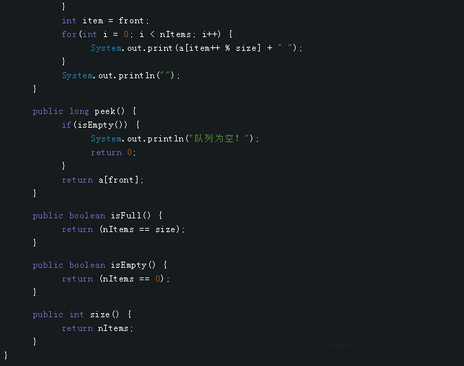 队列也可以用数组来实现,不过这里有个问题,当数组下标满了后就不能再添加了,但是数组前面由于已经删除队列头的数据了,导致空。所以队列我们可以用循环数组来实现,见下面的代码:
