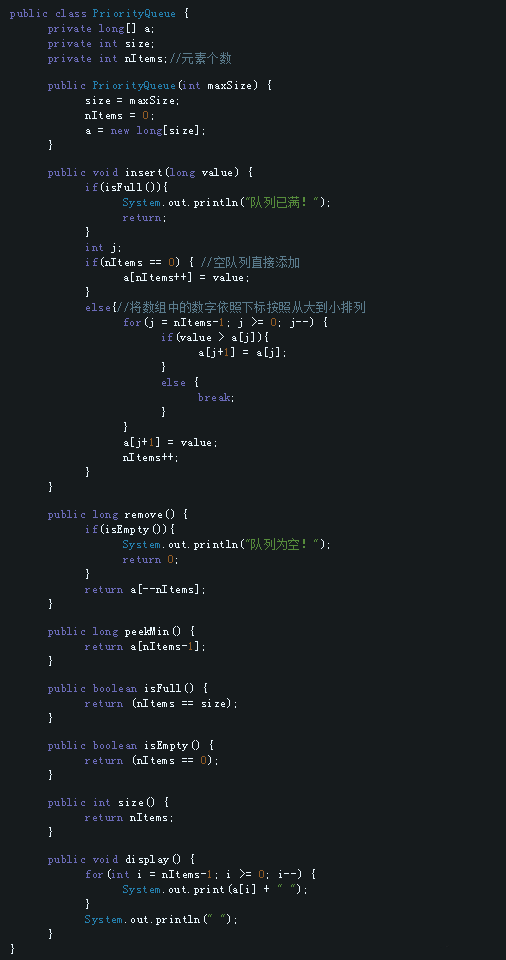 这里实现的优先级队列中,插入操作需要 O(N) 的时间,而删除操作则需要 O(1) 的时间。