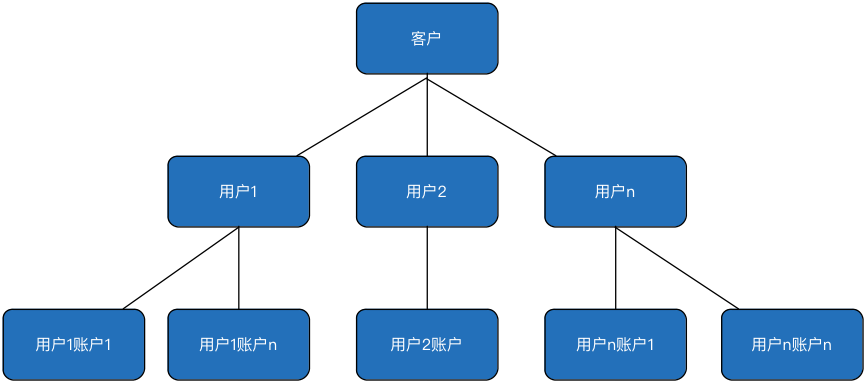 宜信支付结算账户体系是客户、用户、账户三层结构,证件号和证件类型唯一确定一个客户,客户号和机构号确定一个用户,一个用户下可开多个不同类型的账户。如图: