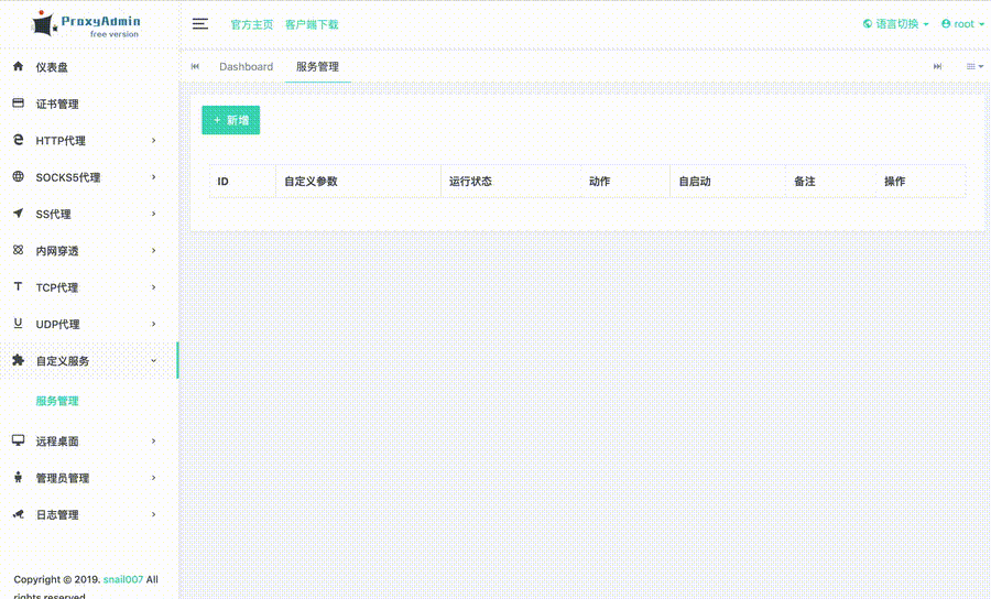 | 导读 | Proxy-Go 控制面板 Proxy*****Free 是强大的代理服务工具 snail007/goproxy 的控制面板,运行了它,一秒让你的服务器变为强大的代理服务器,友好的交互界面,小白也能轻松上手,让你用起来得心应手,心情舒畅。 |
