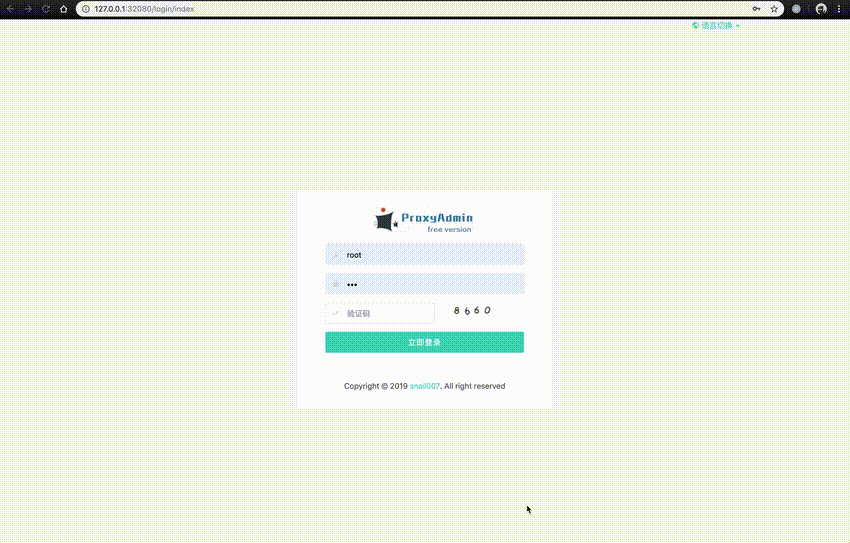 安装成功后,打开浏览器访问:http://127.0.0.1:32080 , 首次默认账号是root,密码是123,登录后记得第一时间修改。
