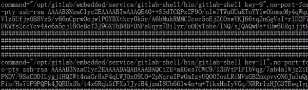 更详细的设置选项,可以参考sshd官方手册。默认会限制关闭大多数东西,通过pty显式重新启用TTY分配,这样就可以做自定义自己的终端应用(比如Python下curses编写的应用)。我们再来看一个典型的gitlab下典型的多用户限制登陆型的authorized_keys配置实例: