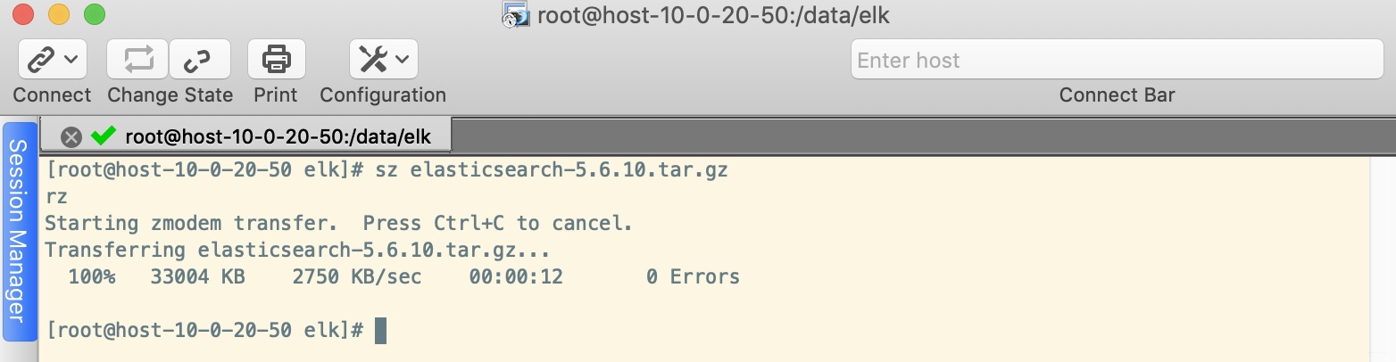 [root@host-10-0-20-50 ~]# cd /data/elk [root@host-10-0-20-50 ~]# sz elasticsearch-5.6.10.tar.gz