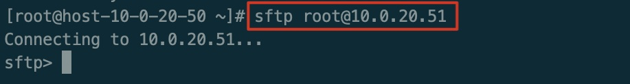 # sftp username@remote_ip(or remote host name), 连接root用户, 则可省略"root@". sftp root@10.0.20.51