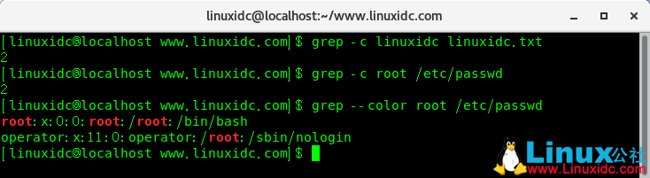 grep -c string(字符串) filename(文件名) [linuxidc@localhost www.linuxidc.com]$?grep -c linuxidc linuxidc.txt