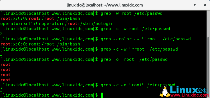 grep --color -w '^root' /etc/passwd grep -c -w '^root' /etc/passwd