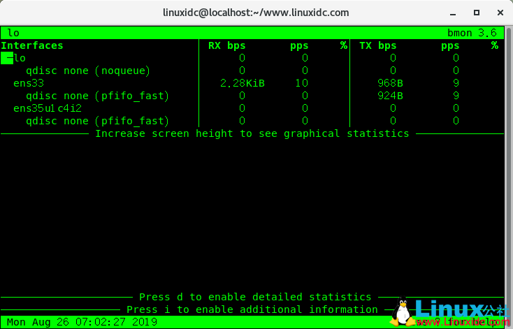 安装bmon后,运行以下命令在默认 curse模式下执行bmon: