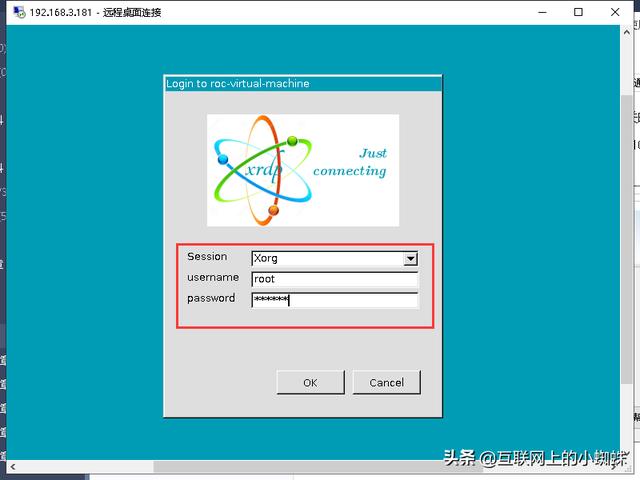 链接成功后,选择xorg,输入链接Ubuntu桌面的账号和密码,这里为root帐号链接
