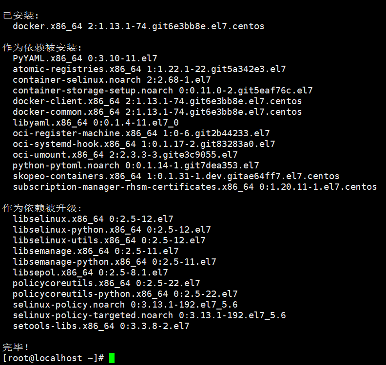 [root@localhost ~]# yum -y install docker