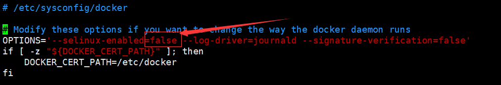 在这个位置添加=false参数,从新启动docker服务。