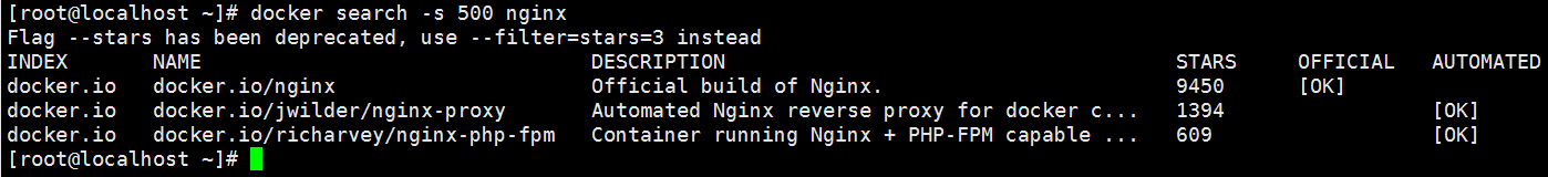 [root@localhost ~]# docker search -s 500 nginx
