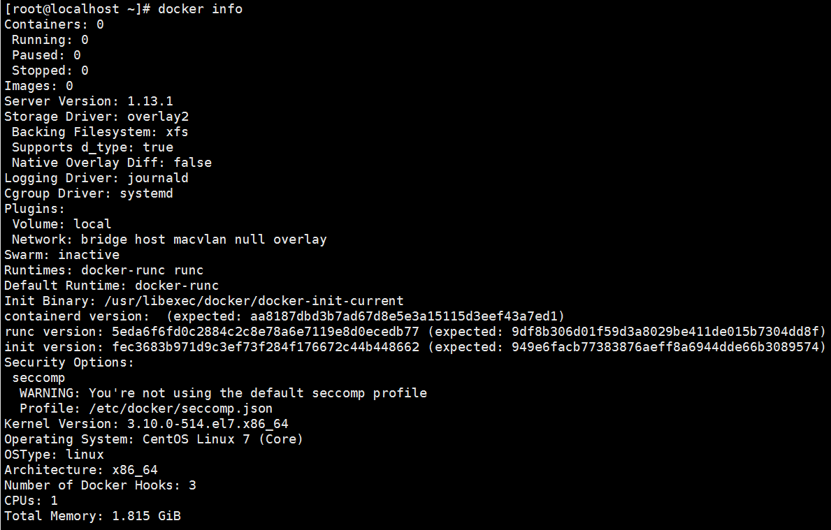 查看当前信息 [root@localhost ~]# docker info