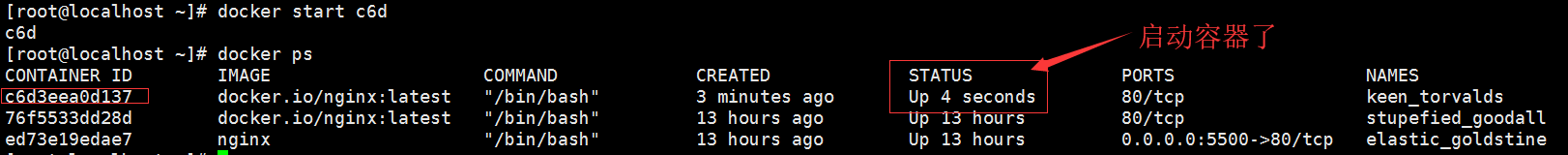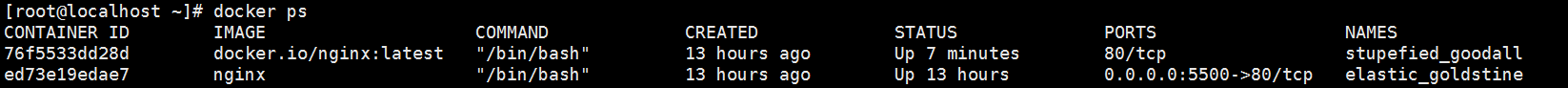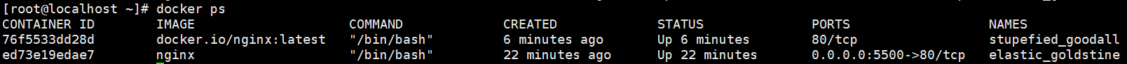 [root@localhost ~]# docker ps