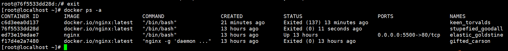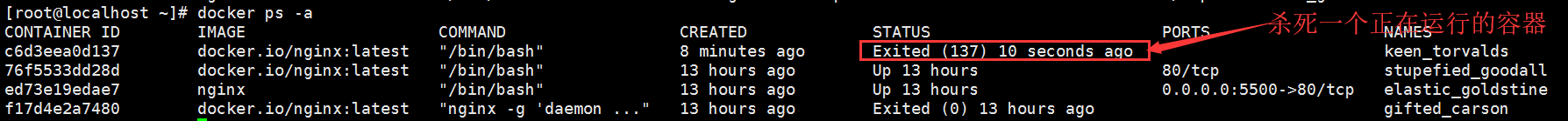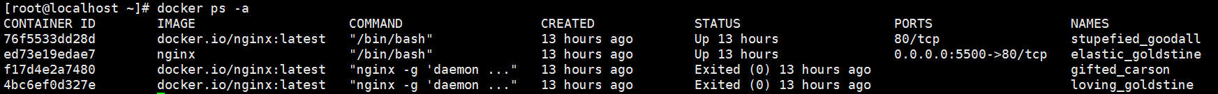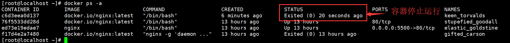 [root@localhost ~]# docker ps –a