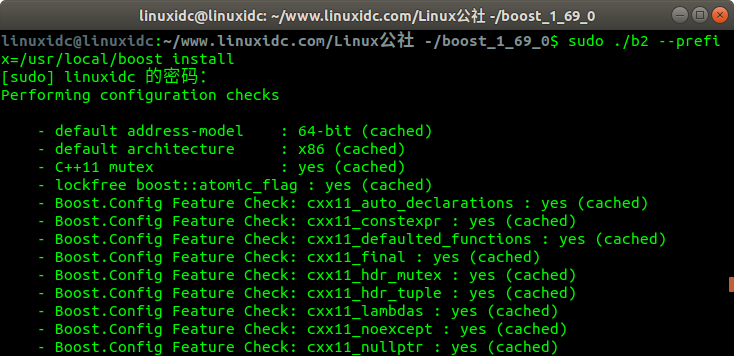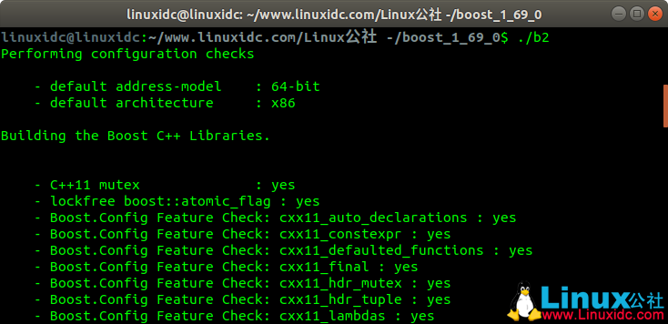 linuxidc@linuxidc:~/www.linuxidc.com/Linux公社 -/boost_1_69_0$ ./b2