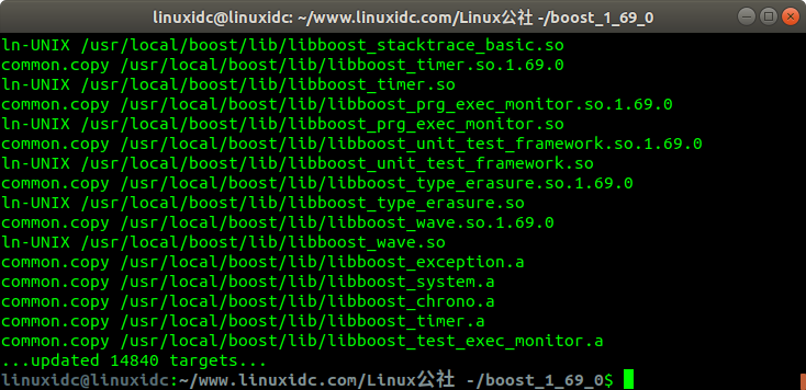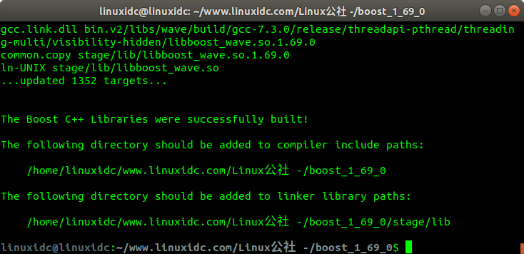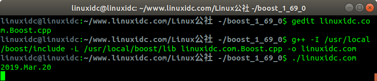 linuxidc@linuxidc:~/www.linuxidc.com/Linux公社 -/boost_1_69_0$ ./linuxidc.com 2019.Mar.20