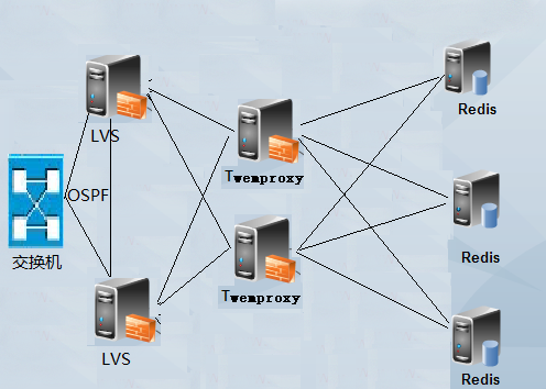 PS:如果你是大规模Redis或Memcached应用场景,就可以做Twemproxy的负载军和场景,也就是在高可用Twemproxy的基础上加LVS节点,利用LVS(Linux virtual server)做Twemproxy的负载均衡,LVS是四层负载均衡技术,有很强大的代理能力,具体可以看本博客的LVS章节介绍。但是当你使用LVS之后,又出现了Twemproxy的问题,单点故障故障问题,这个时候又要跟给LVS做高可用了。但是LVS也支持做负载均衡,利用OSPF路由技术就可以做负载均衡了。而这个架构也就是我目前工作中正在使用的架构方式。