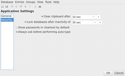 3. 打开自动数据库锁定。在“工具”菜单下的“应用程序设置”中,有一个选项可在一段时间不活动后锁定数据库。启用该选项是很好的常识性措施,类似启用受密码保护的屏幕锁,那样如果别人可以访问你的电脑,这有助于确保你的密码数据库没有敞开、受到保护。