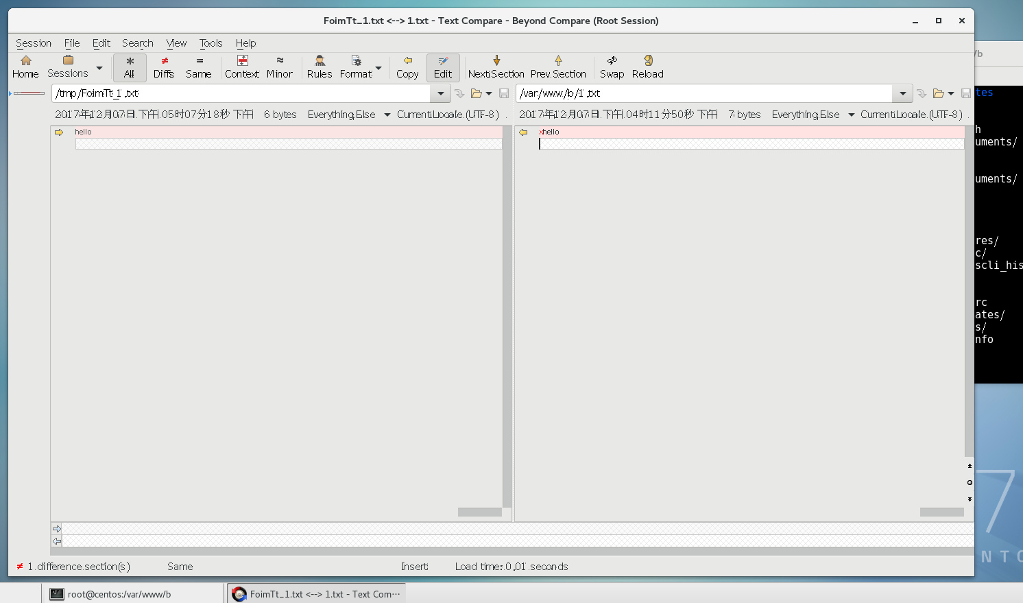 安装好之后就可以直接用bcompare命令调出对比工具了