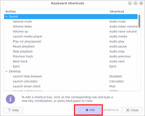 然后点击 “Add” 来创建快捷键。