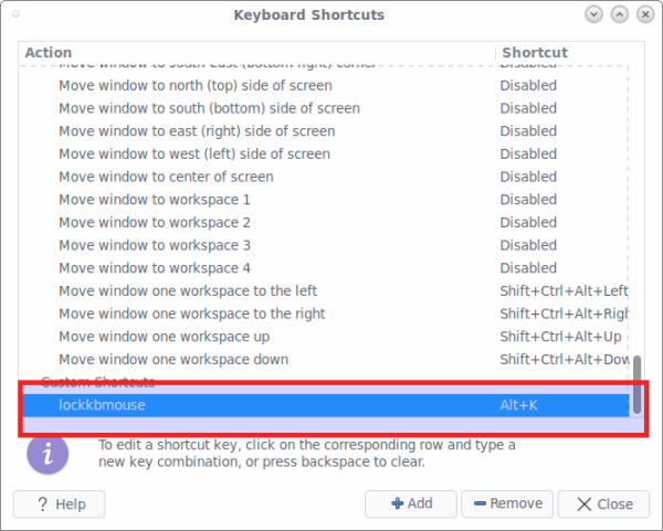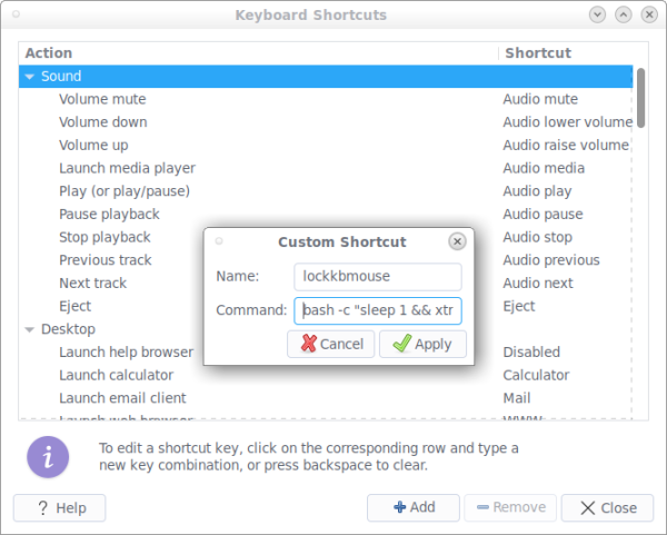安装好 xtrlock 后,你需要根据你的选择来创建一个快捷键,通过这个快捷键来锁住键盘和鼠标。