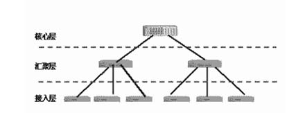 这种方式一般应用于比较复杂的网络结构中,按照功能可划分为:接入层、汇聚层、核心层。其结构示意图如下所示。