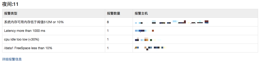 cpu idle too low (<30%) 是报警的类型,可以据此项进行类型纬度的统计;