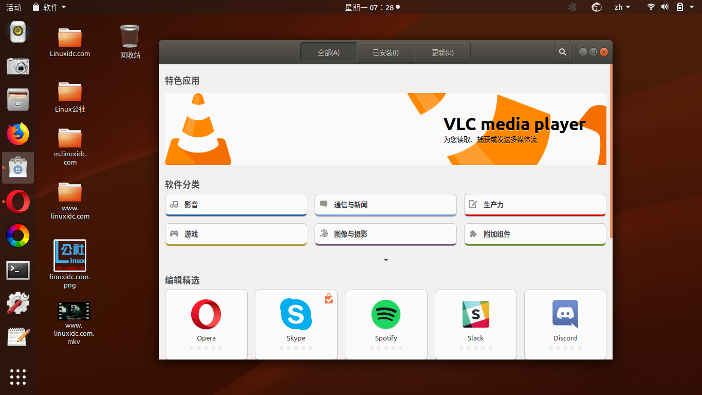 Ubuntu采用带有图标的经典桌面风格,左侧的面板模仿其传统的底座,以及定制的窗口外观(也是传统的),Ubuntu Ambiance主题设置为默认外观。