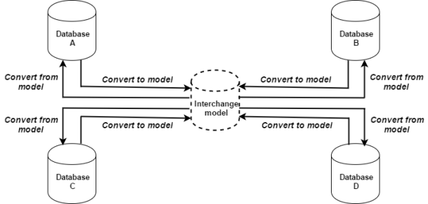 数据交换模型使得不同应用程序之间的数据交换成为可能。这里是一个最基本的动机:不同应用程序之间的组对会导致有 n*(n-1) 个数据接口。