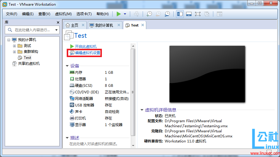 首先,安装完系统之后,在开启系统之前,点击“编辑虚拟机设置”来设置网卡模式。