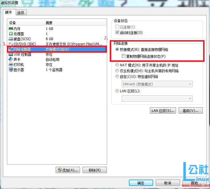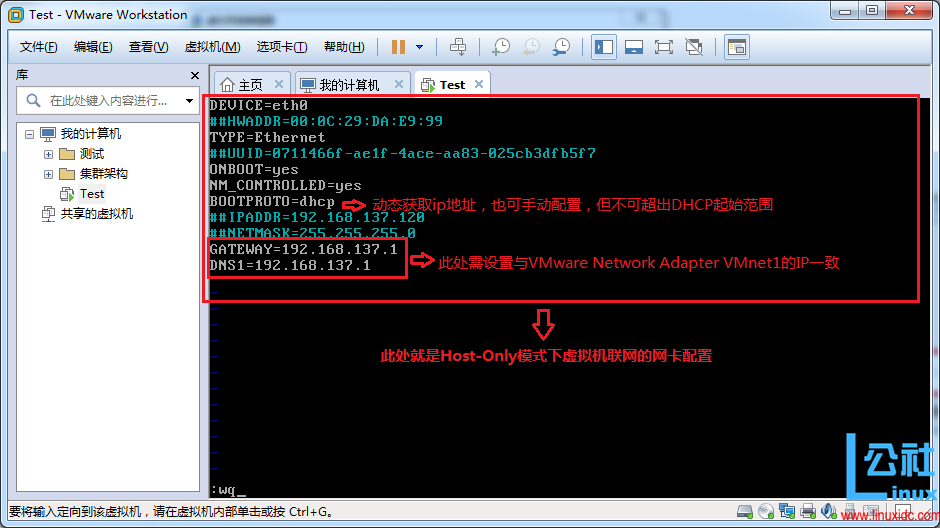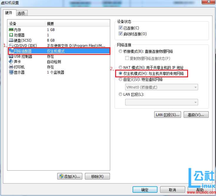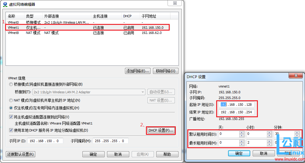 重新配置网卡,将VMware Network Adapter VMnet1虚拟网卡作为虚拟机的路由。