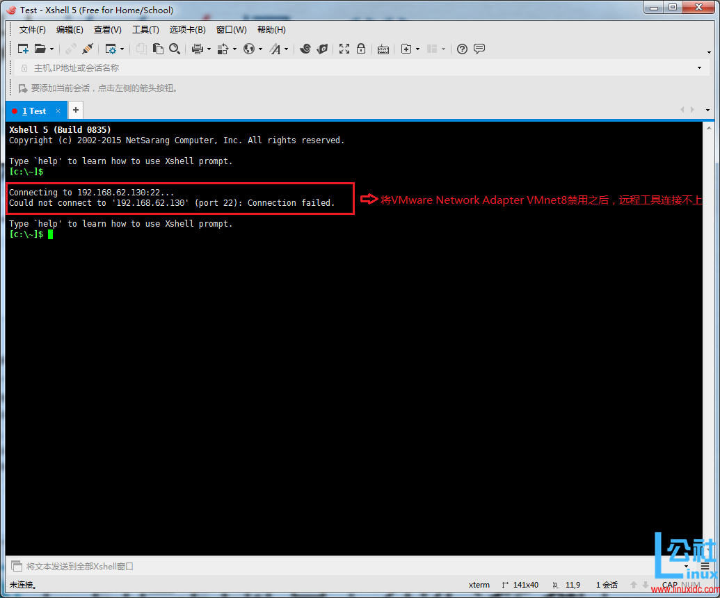 之前我们就说VMware Network Adapter VMnet8的作用是主机与虚拟机之间的通信,接下来,我们就用远程连接工具来测试一下。