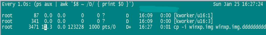 如下,是我在执行一个大文件的cp时,通过上面的指令查看到的结果:
