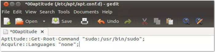 sudo gedit /etc/apt/apt.conf.d/00aptitude