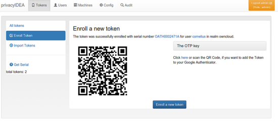 其他令牌类型以其他方式注册,这超出了本教程的范围。 有关更多信息,请参阅privacyIDEA文档 。