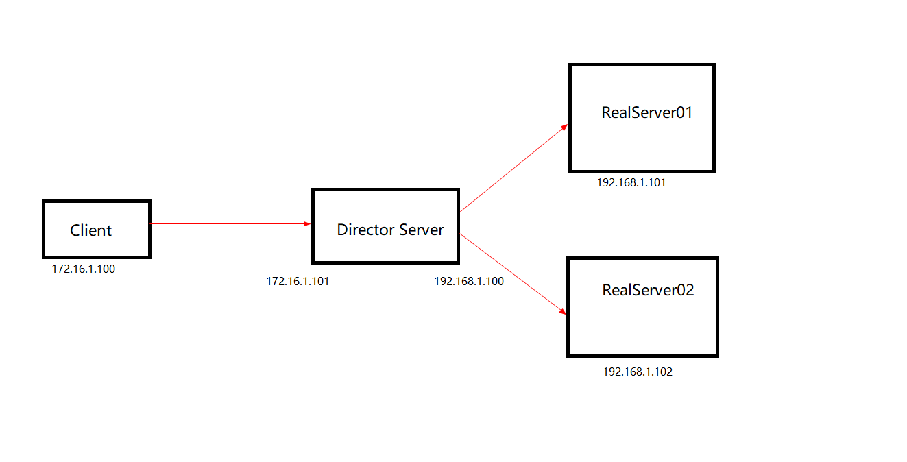 实验环境:CentOS6.5,关闭iptables/selinux Client: 172.16.1.100 Director Server: eth0 - 192.168.1.100 eth1 - 172.16.1.101 (VIP) RealServer01: 192.168.1.101 RealServer02: 192.168.1.102