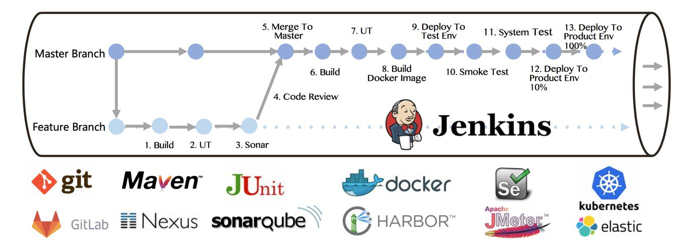 · 验证阶段:基于主线的集成和多环境的自动化测试验证,输出可部署的高质量的版本包