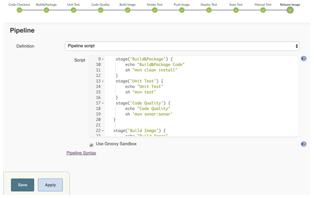 在案例中,我们选择使用 Jenkins 2.0 中全新的 Pipeline 和 BlueOcean 来实现和可是整个流水线,整个过程一览无余。