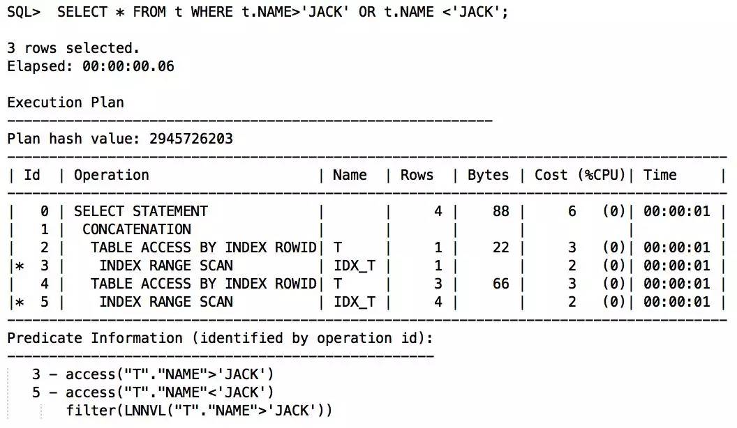 将<>改写为OR连接后,能够正确使用索引,走OR扩展: