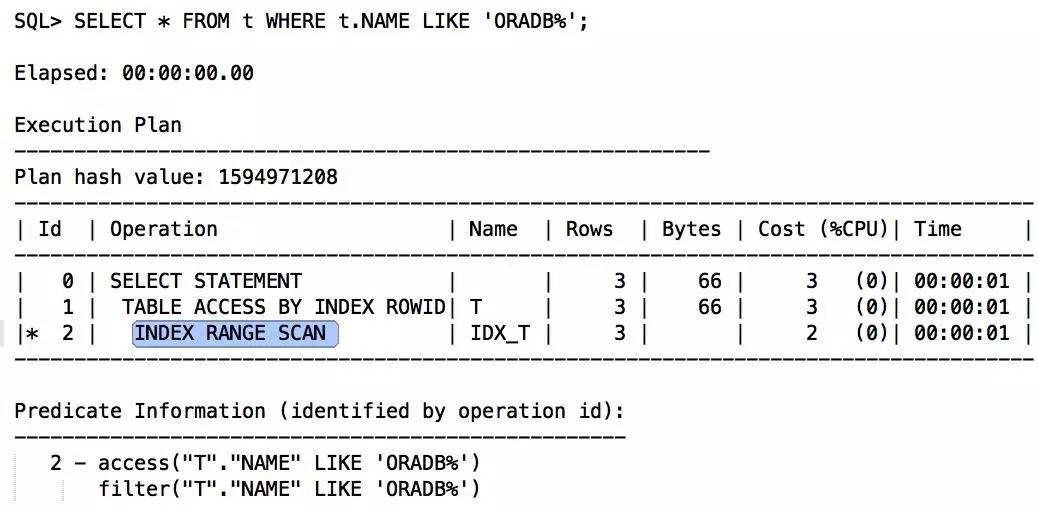 SELECT ?* FROM t WHERE t.NAME LIKE ‘%ORADB1’;