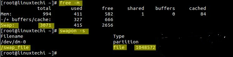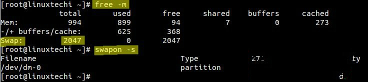 让我们首先检查现有的交换空间/分区的大小,使用命令 free -m或者swapon -s