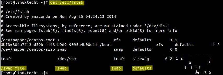 在fstab文件中添加以下条目,以便交换文件每次重启后互能继续使用.