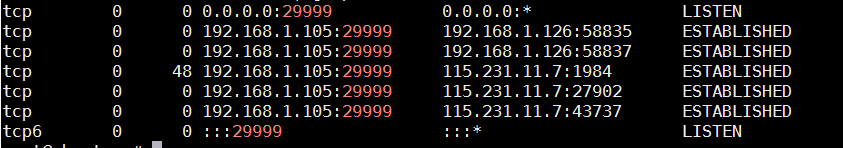 netstat -antl | grep 29999 发现29999端口处于监听状态