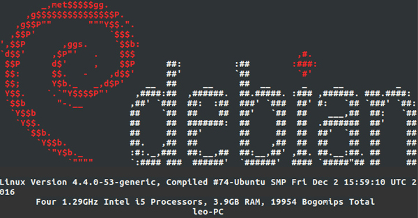 linux_logo -f -L list Available Built-in Logos: Num Type Ascii Name Description 1 Classic Yes aix AIX Logo 2 Classic Yes bsd FreeBSD Logo 3 Banner Yes bsd_banner FreeBSD Logo 4 Classic Yes irix Irix Logo 5 Classic Yes openbsd OpenBSD Logo 6 Banner Yes openbsd_banner OpenBSD Logo 7 Banner Yes solaris The Default Banner Logos 8 Banner Yes banner-simp Simplified Banner Logo 9 Banner Yes banner The Default Banner Logo 10 Classic Yes classic-nodots The Classic Logo, No Periods 11 Classic Yes classic-simp Classic No Dots Or Letters 12 Classic Yes classic The Default Classic Logo 13 Classic Yes core Core Linux Logo 14 Banner Yes debian_banner_2 Debian Banner 2 15 Banner Yes debian_banner Debian Banner (white) 16 Classic Yes debian_old Debian Old Penguin Logos 17 Classic Yes debian Debian Swirl Logos 18 Classic Yes gnu_linux Classic GNU/Linux 19 Banner Yes mandrake_banner Mandrake(TM) Linux Banner 20 Banner Yes mandrake Mandrakelinux(TM) Banner 21 Banner Yes mandriva Mandriva(TM) Linux Banner 22 Banner Yes pld PLD Linux banner 23 Classic Yes raspi An ASCII Raspberry Pi logo 24 Banner Yes redhat RedHat Banner (white) 25 Banner Yes slackware Slackware Logo 26 Banner Yes sme **E Server Banner Logo 27 Banner Yes sourcemage_ban Source Mage GNU/Linux banner 28 Banner Yes sourcemage Source Mage GNU/Linux large 29 Banner Yes suse SUSE Logo 30 Banner Yes ubuntu Ubuntu Logo Do "linux_logo -L num" where num is from above to get the appropriate logo. Remember to also use -a to get ascii version.