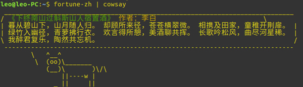 注:此时再敲入fortune回车,输出的内容包括中、英文