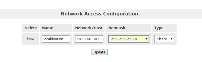 选择允许访问的ip地址或一个网段,然后点击“update”